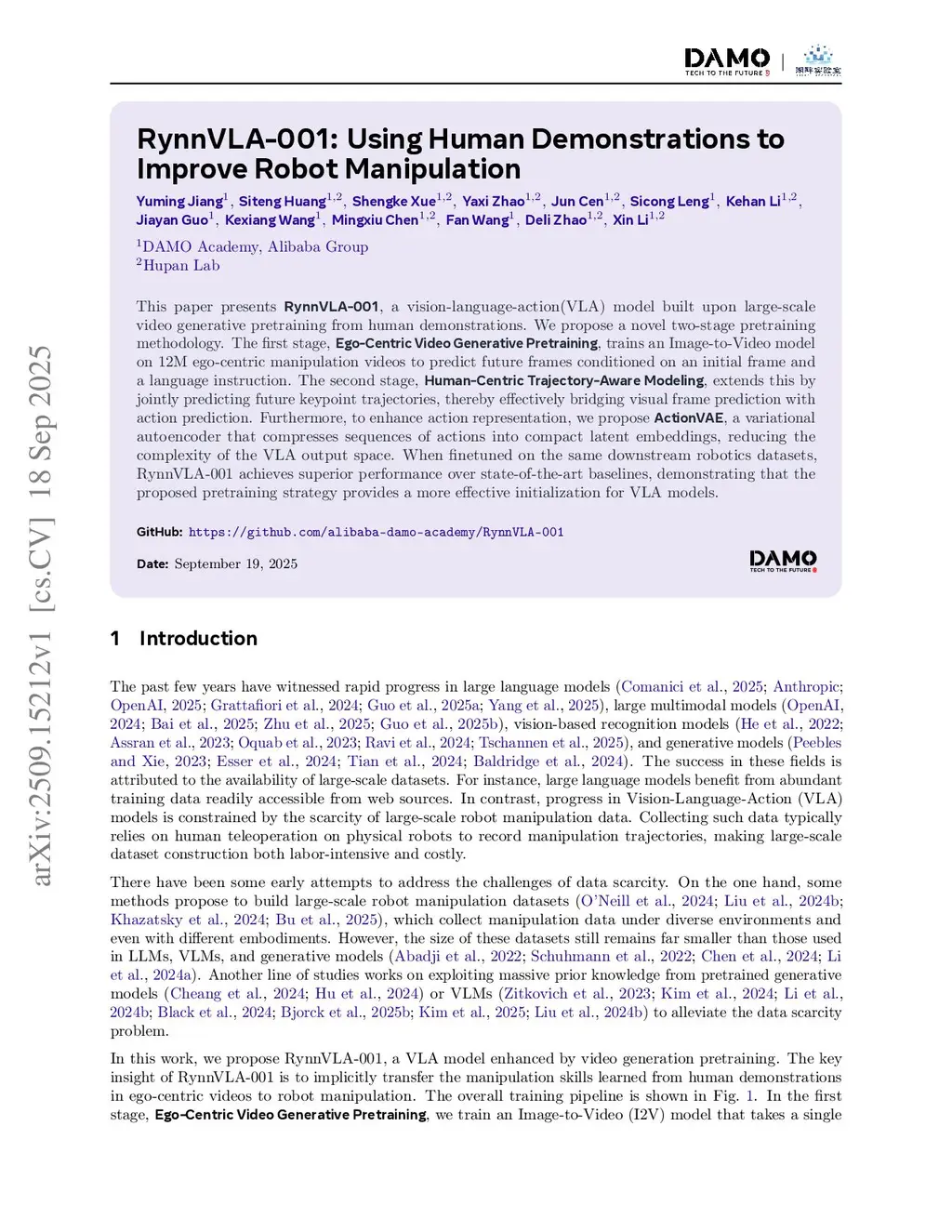 RynnVLA-001: Using Human Demonstrations to Improve Robot Manipulation