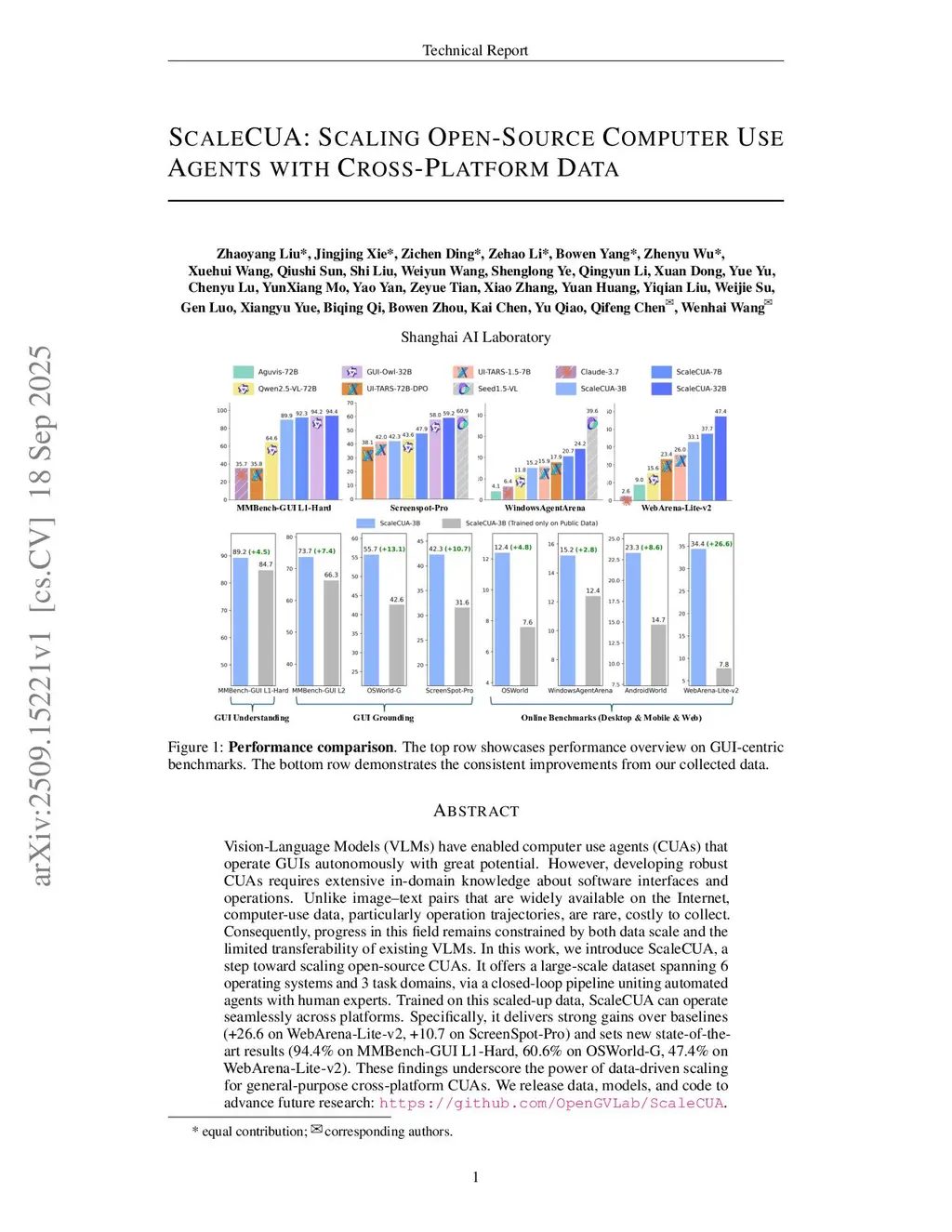 ScaleCUA: Scaling Open-Source Computer Use Agents with Cross-Platform Data