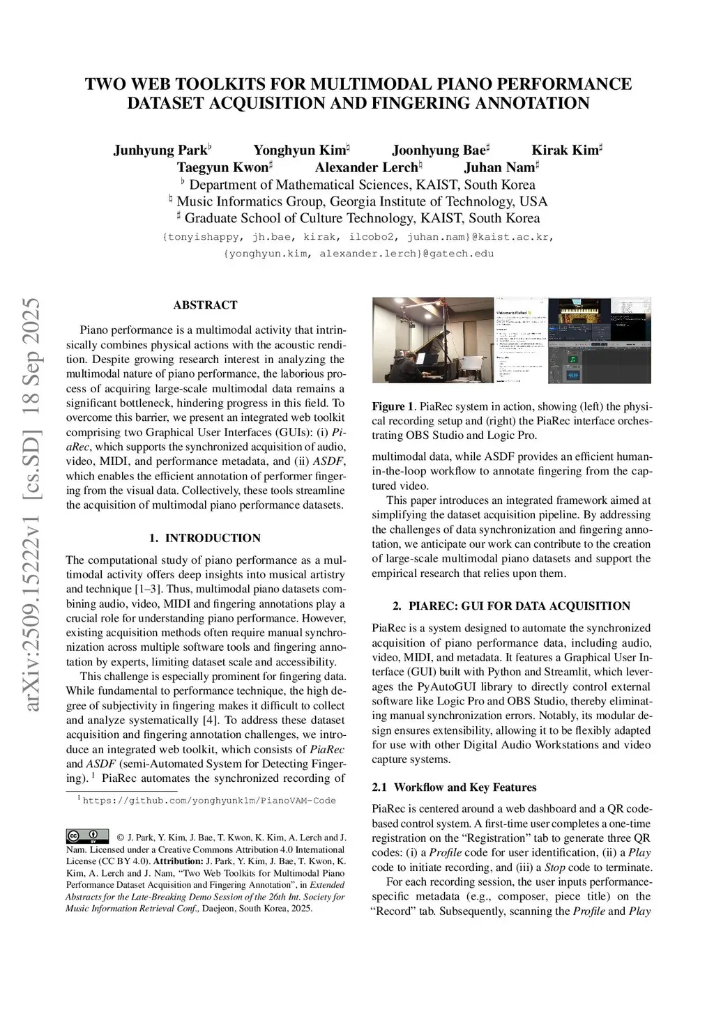 Two Web Toolkits for Multimodal Piano Performance Dataset Acquisition and Fingering Annotation
