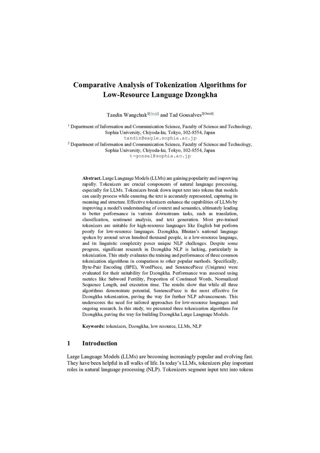 Large Language Models (LLMs) are gaining popularity and improving rapidly. Tokenizers are crucial components of natural language processing, especially for LLMs. Tokenizers break down input text into tokens that models can easily process while ensuring the text is accurately represented, capturing its meaning and structure. Effective tokenizers enhance the capabilities of LLMs by improving a model's understanding of context and semantics, ultimately leading to better performance in various downstream tasks, such as translation, classification, sentiment analysis, and text generation. Most pre-trained tokenizers are suitable for high-resource languages like English but perform poorly for low-resource languages. Dzongkha, Bhutan's national language spoken by around seven hundred thousand people, is a low-resource language, and its linguistic complexity poses unique NLP challenges. Despite some progress, significant research in Dzongkha NLP is lacking, particularly in tokenization. This study evaluates the training and performance of three common tokenization algorithms in comparison to other popular methods. Specifically, Byte-Pair Encoding (BPE), WordPiece, and SentencePiece (Unigram) were evaluated for their suitability for Dzongkha. Performance was assessed using metrics like Subword Fertility, Proportion of Continued Words, Normalized Sequence Length, and execution time. The results show that while all three algorithms demonstrate potential, SentencePiece is the most effective for Dzongkha tokenization, paving the way for further NLP advancements. This underscores the need for tailored approaches for low-resource languages and ongoing research. In this study, we presented three tokenization algorithms for Dzongkha, paving the way for building Dzongkha Large Language Models.