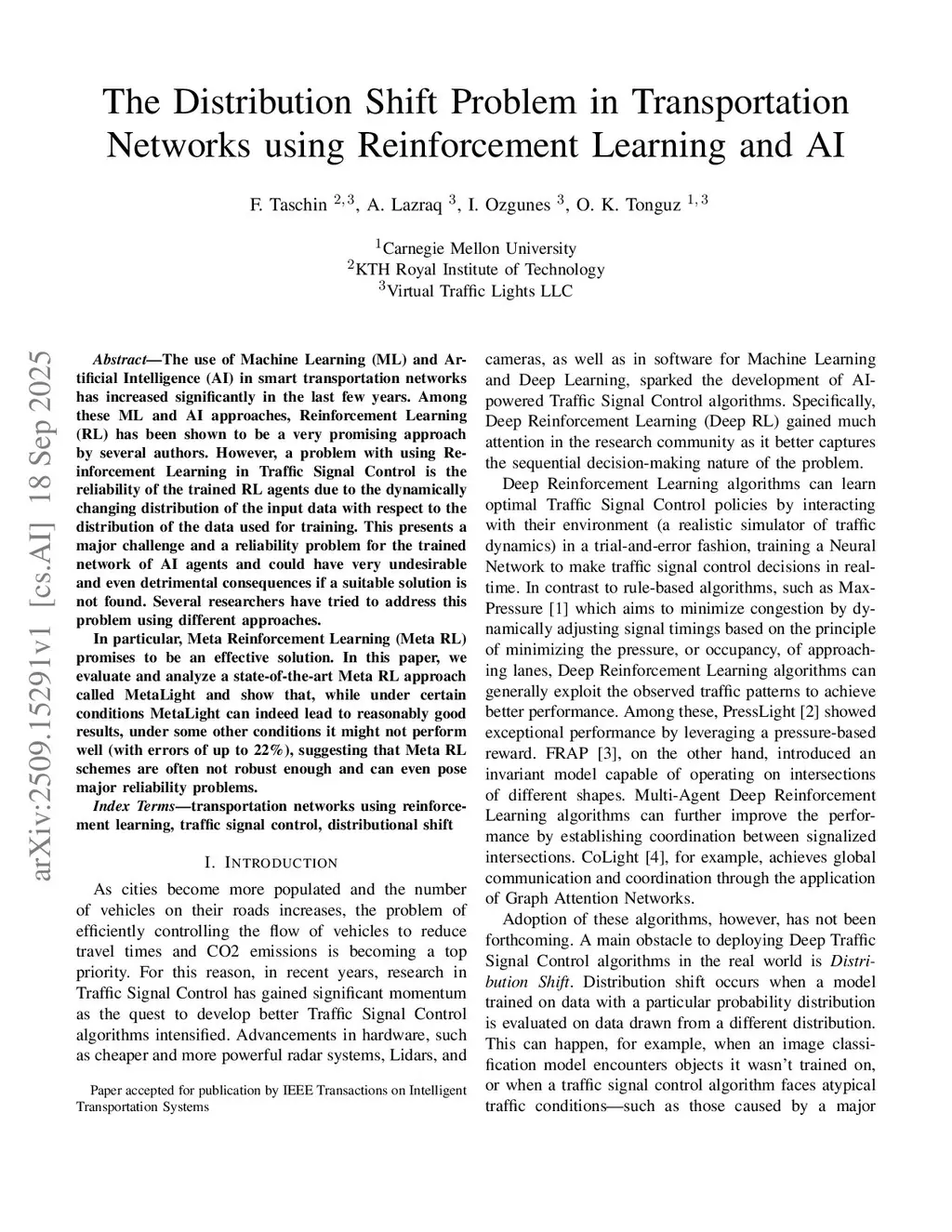 The Distribution Shift Problem in Transportation Networks using Reinforcement Learning and AI