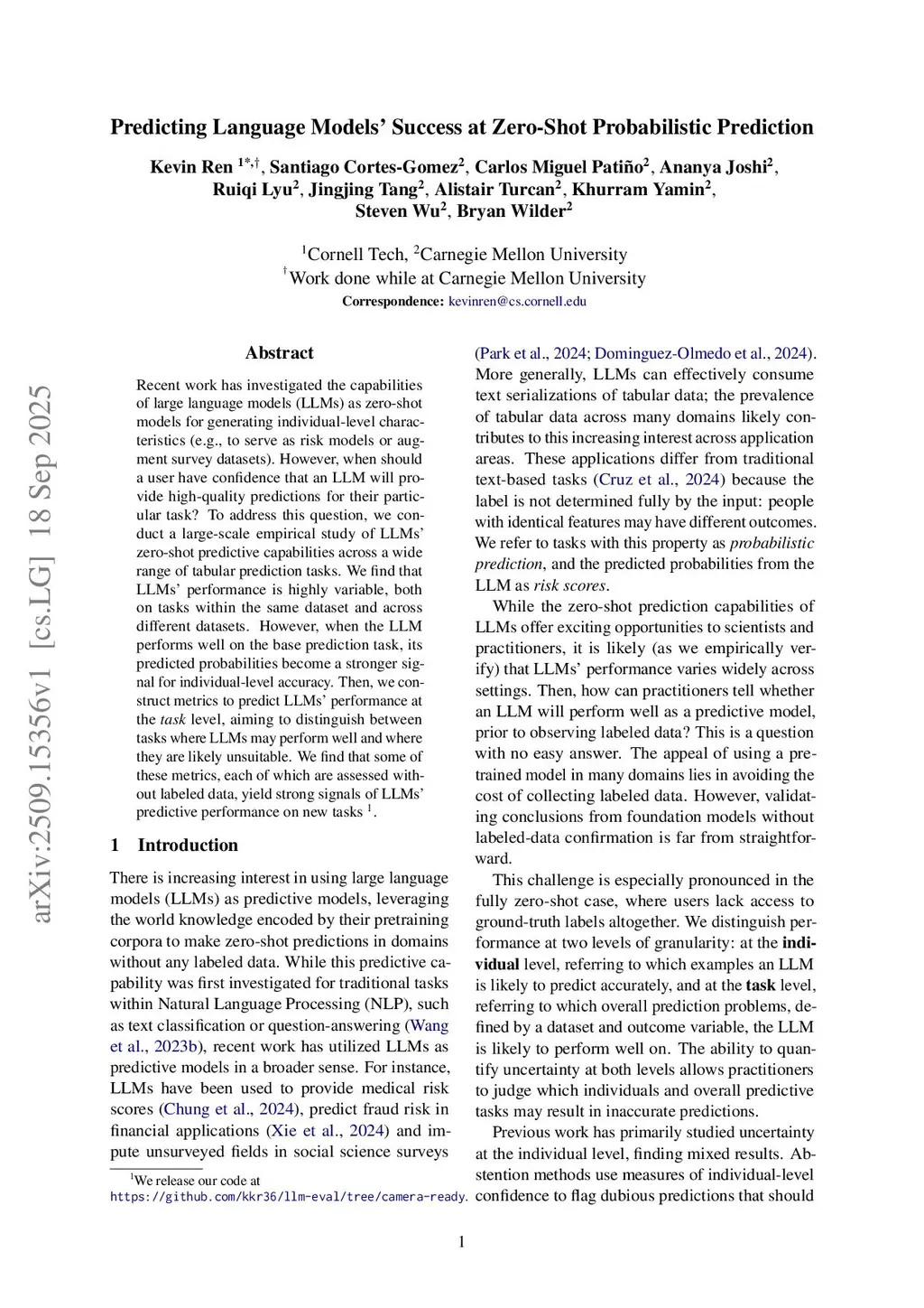 Recent work has investigated the capabilities of large language models (LLMs) as zero-shot models for generating individual-level characteristics (e.g., to serve as risk models or augment survey datasets). However, when should a user have confidence that an LLM will provide high-quality predictions for their particular task? To address this question, we conduct a large-scale empirical study of LLMs' zero-shot predictive capabilities across a wide range of tabular prediction tasks. We find that LLMs' performance is highly variable, both on tasks within the same dataset and across different datasets. However, when the LLM performs well on the base prediction task, its predicted probabilities become a stronger signal for individual-level accuracy. Then, we construct metrics to predict LLMs' performance at the task level, aiming to distinguish between tasks where LLMs may perform well and where they are likely unsuitable. We find that some of these metrics, each of which are assessed without labeled data, yield strong signals of LLMs' predictive performance on new tasks.