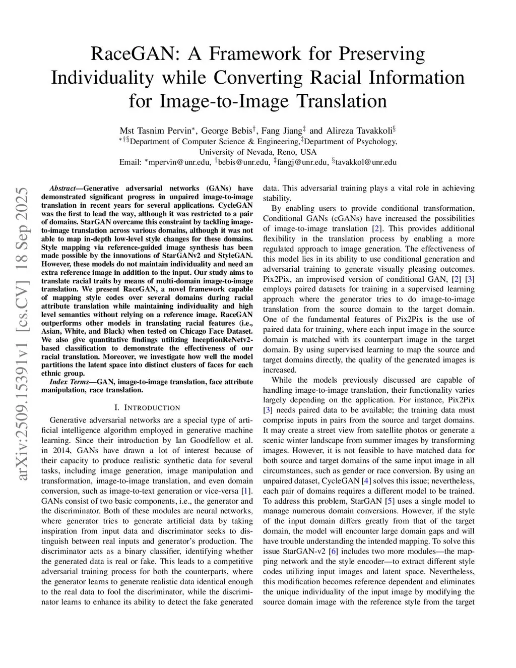 RaceGAN: A Framework for Preserving Individuality while Converting Racial Information for Image-to-Image Translation