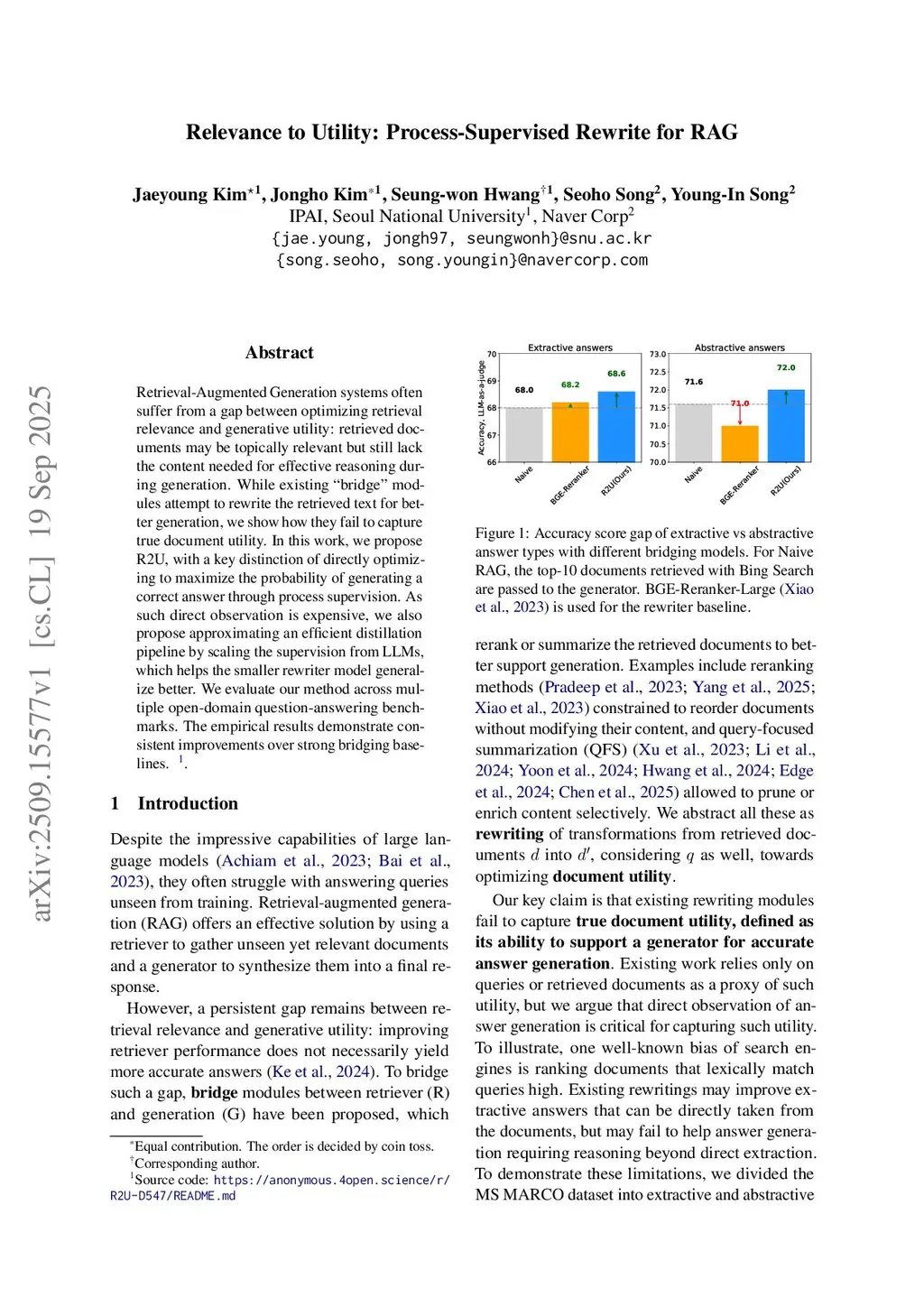 Retrieval-augmented generation systems often suffer from a gap between optimizing retrieval relevance and generative utility. With such a gap, retrieved documents may be topically relevant but still lack the content needed for effective reasoning during generation. While existing bridge modules attempt to rewrite the retrieved text for better generation, we show how they fail by not capturing "document utility". In this work, we propose R2U, with a key distinction of approximating true utility through joint observation of rewriting and answering in the reasoning process. To distill, R2U scale such supervision to enhance reliability in distillation. We further construct utility-improvement supervision by measuring the generator's gain of the answer under the rewritten context, yielding signals for fine-tuning and preference optimization. We evaluate our method across multiple open-domain question-answering benchmarks. The empirical results demonstrate consistent improvements over strong bridging baselines
