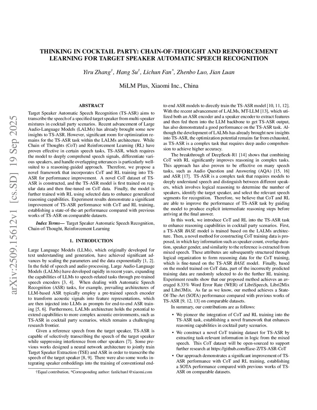 Thinking in cocktail party: Chain-of-Thought and reinforcement learning for target speaker automatic speech recognition