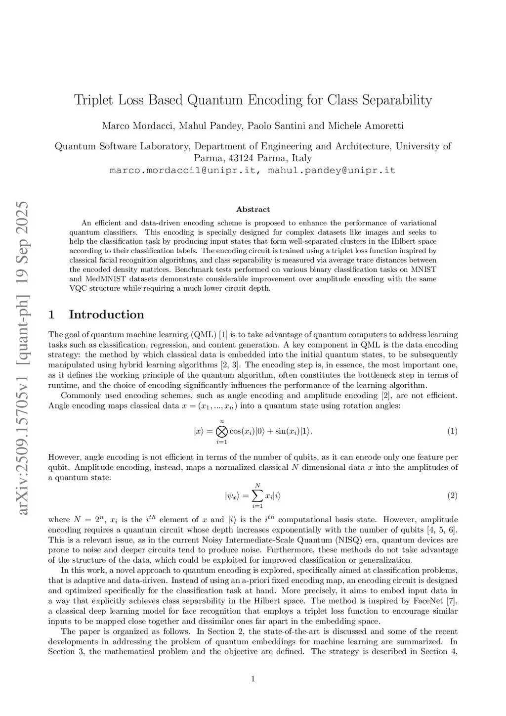 An efficient and data-driven encoding scheme is proposed to enhance the performance of variational quantum classifiers. This encoding is specially designed for complex datasets like images and seeks to help the classification task by producing input states that form well-separated clusters in the Hilbert space according to their classification labels. The encoding circuit is trained using a triplet loss function inspired by classical facial recognition algorithms, and class separability is measured via average trace distances between the encoded density matrices. Benchmark tests performed on various binary classification tasks on MNIST and MedMNIST datasets demonstrate considerable improvement over amplitude encoding with the same VQC structure while requiring a much lower circuit depth.