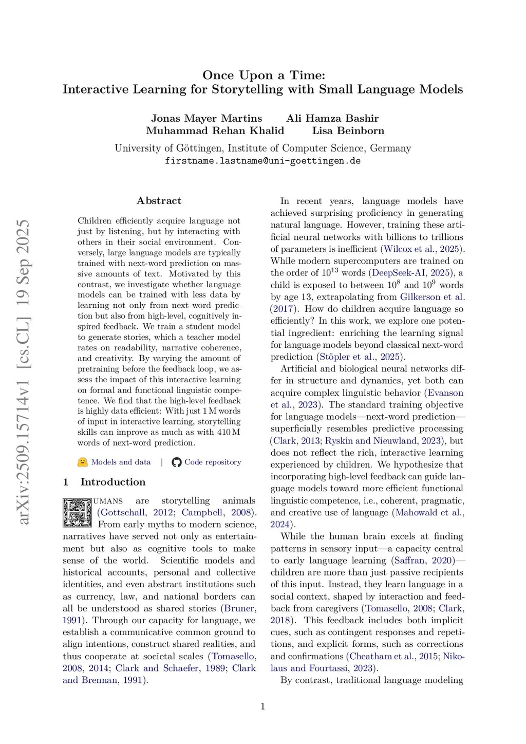 Once Upon a Time: Interactive Learning for Storytelling with Small Language Models