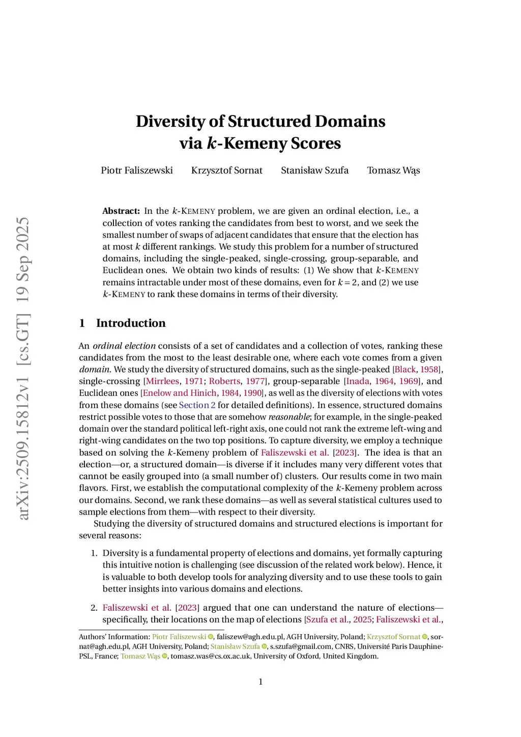 Diversity of Structured Domains via k-Kemeny Scores
