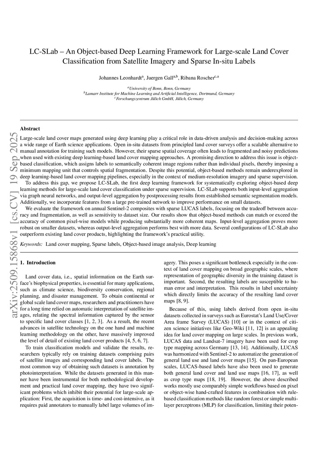 LC-SLab -- An Object-based Deep Learning Framework for Large-scale Land Cover Classification from Satellite Imagery and Sparse In-situ Labels