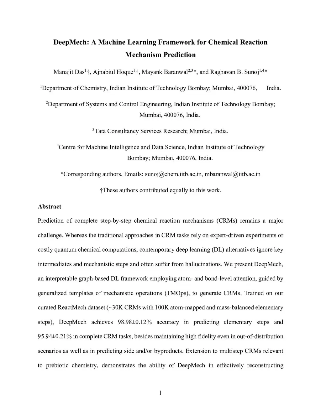 DeepMech: A Machine Learning Framework for Chemical Reaction Mechanism Prediction