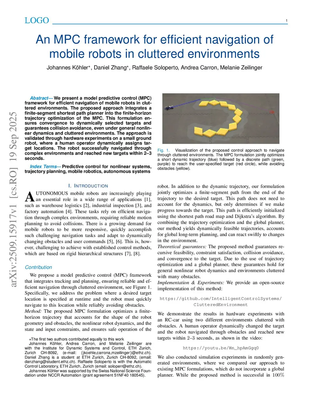An MPC framework for efficient navigation of mobile robots in cluttered environments