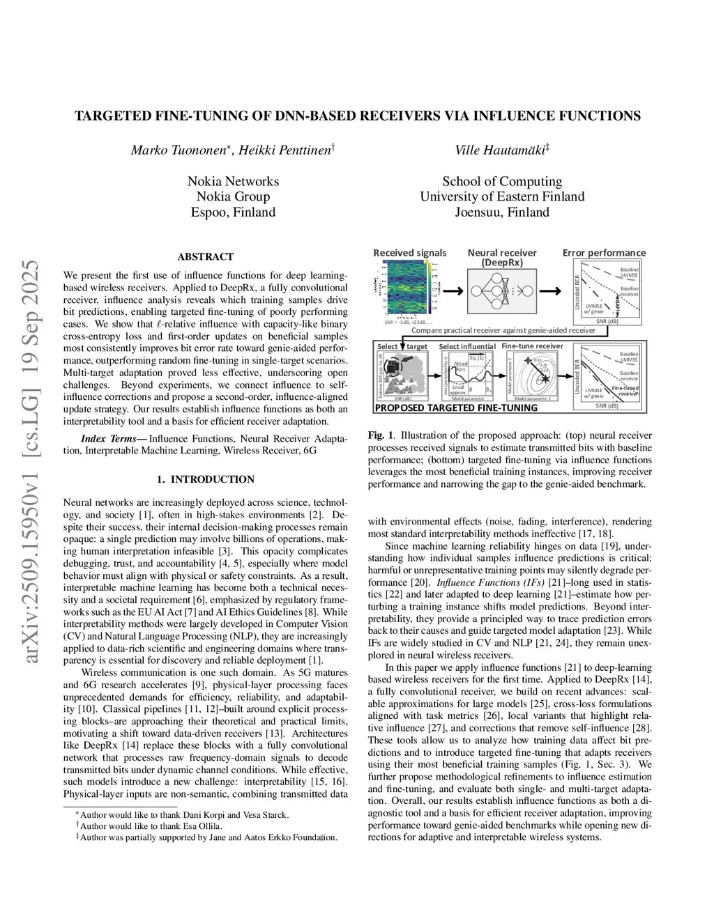 Targeted Fine-Tuning of DNN-Based Receivers via Influence Functions