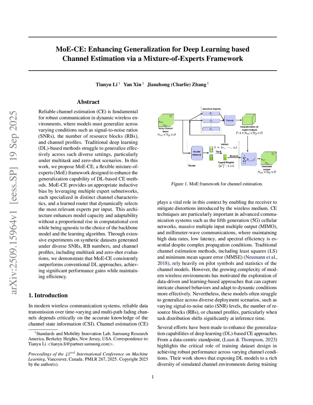 Reliable channel estimation (CE) is fundamental for robust communication in dynamic wireless environments, where models must generalize across varying conditions such as signal-to-noise ratios (SNRs), the number of resource blocks (RBs), and channel profiles. Traditional deep learning (DL)-based methods struggle to generalize effectively across such diverse settings, particularly under multitask and zero-shot scenarios. In this work, we propose MoE-CE, a flexible mixture-of-experts (MoE) framework designed to enhance the generalization capability of DL-based CE methods. MoE-CE provides an appropriate inductive bias by leveraging multiple expert subnetworks, each specialized in distinct channel characteristics, and a learned router that dynamically selects the most relevant experts per input. This architecture enhances model capacity and adaptability without a proportional rise in computational cost while being agnostic to the choice of the backbone model and the learning algorithm. Through extensive experiments on synthetic datasets generated under diverse SNRs, RB numbers, and channel profiles, including multitask and zero-shot evaluations, we demonstrate that MoE-CE consistently outperforms conventional DL approaches, achieving significant performance gains while maintaining efficiency.
