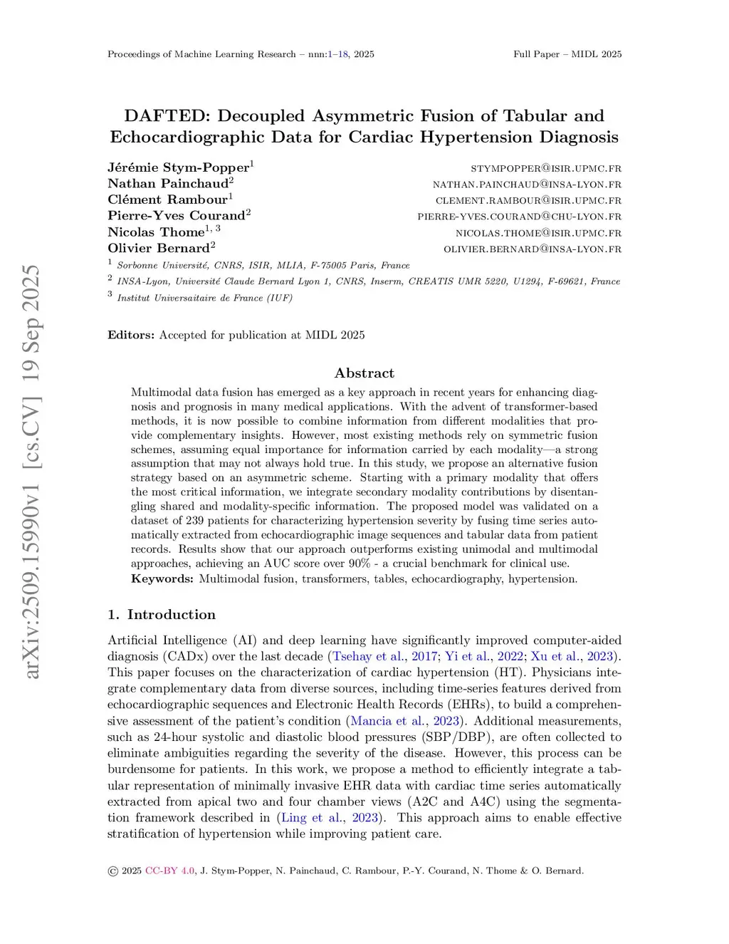 DAFTED: Decoupled Asymmetric Fusion of Tabular and Echocardiographic Data for Cardiac Hypertension Diagnosis