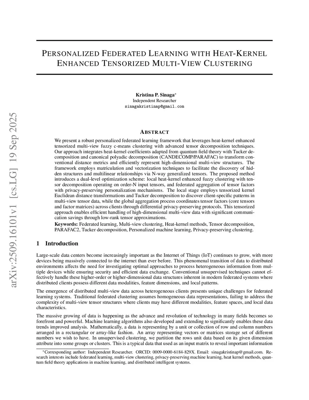 Personalized Federated Heat-Kernel Enhanced Multi-View Clustering via Advanced Tensor Decomposition Techniques