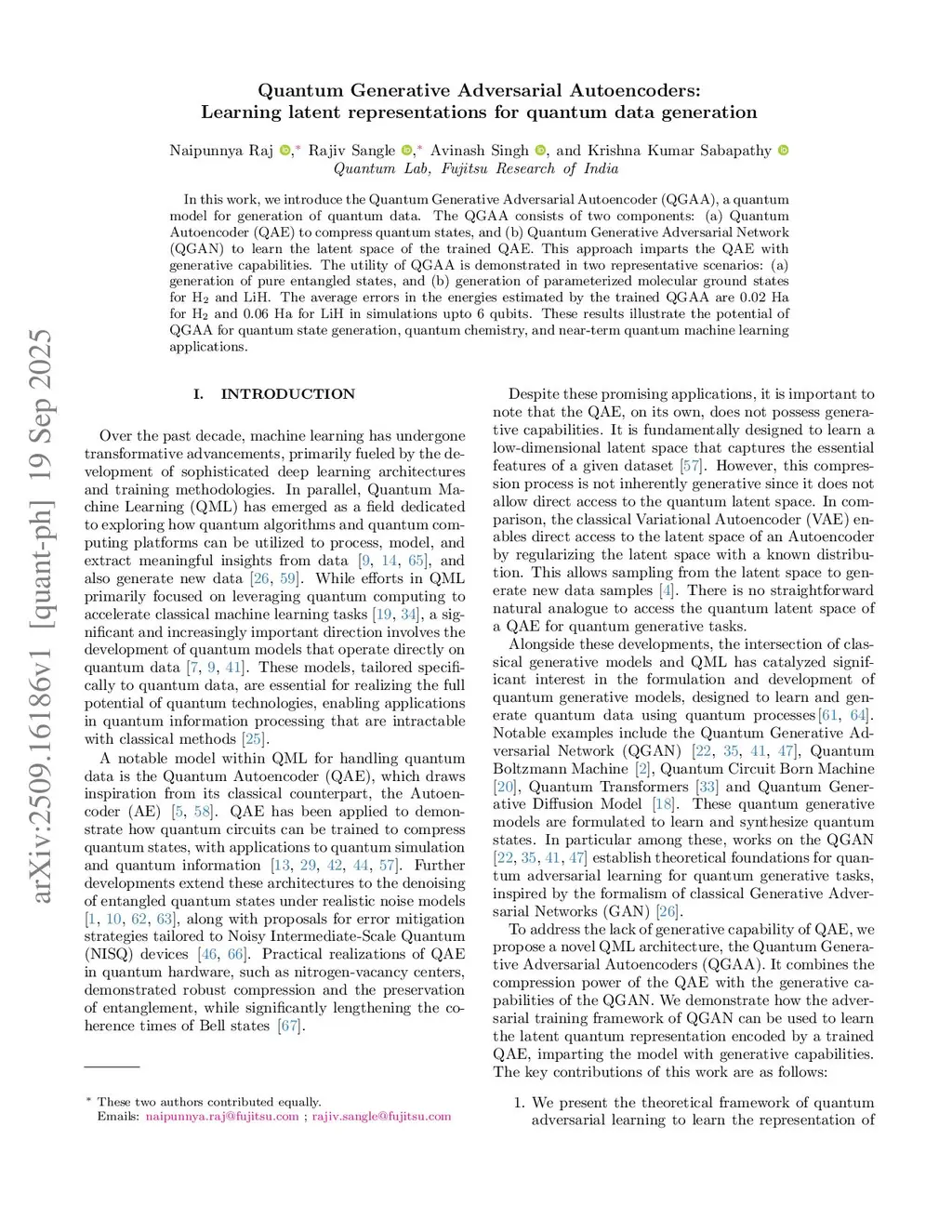Quantum Generative Adversarial Autoencoders: Learning latent representations for quantum data generation