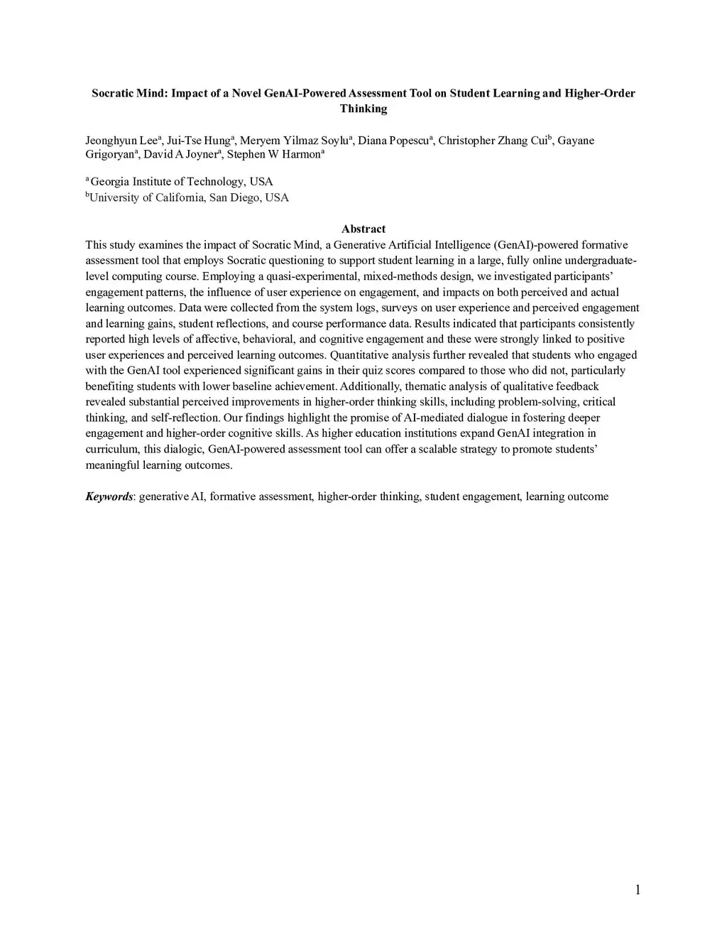 Socratic Mind: Impact of a Novel GenAI-Powered Assessment Tool on Student Learning and Higher-Order Thinking