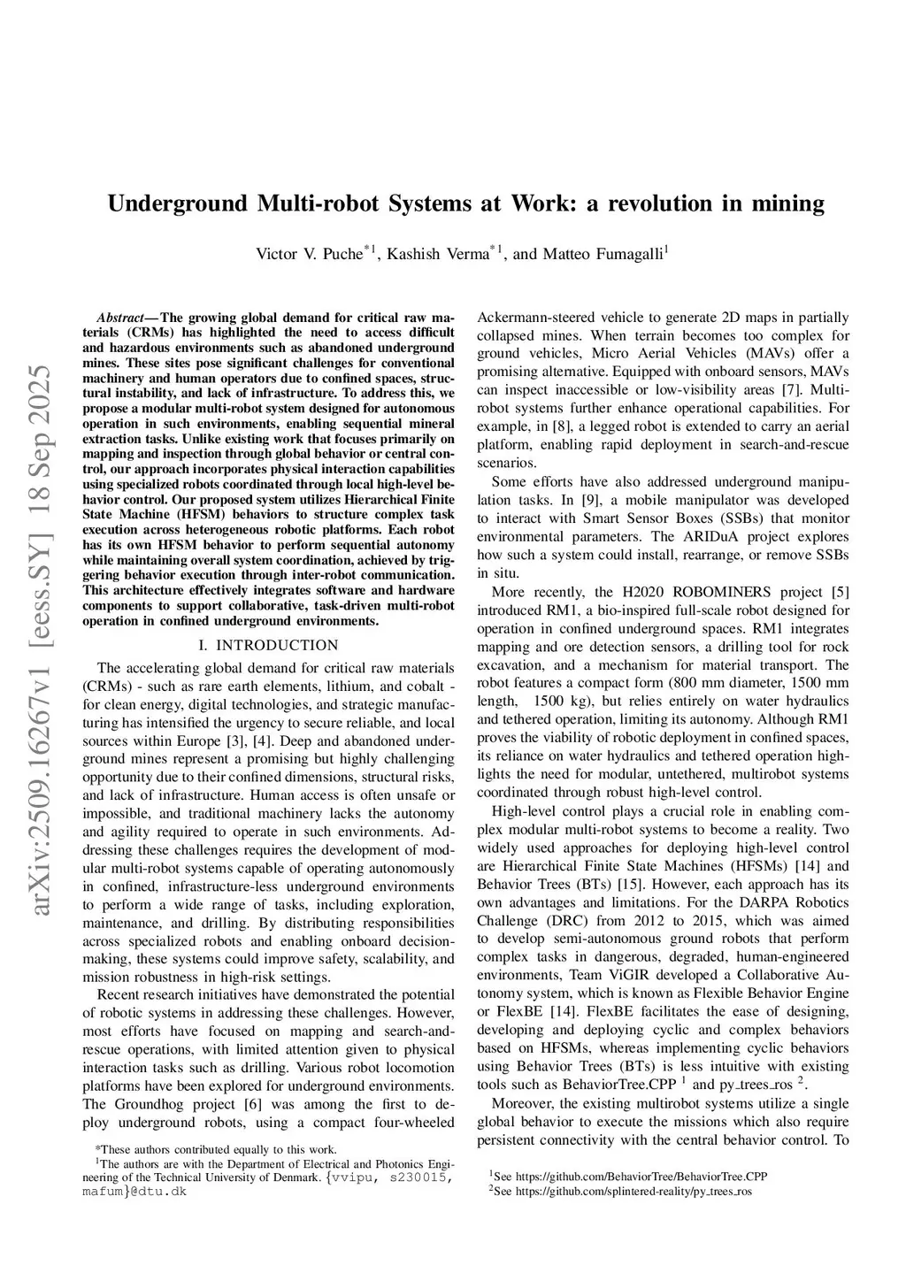 The growing global demand for critical raw materials (CRMs) has highlighted the need to access difficult and hazardous environments such as abandoned underground mines. These sites pose significant challenges for conventional machinery and human operators due to confined spaces, structural instability, and lack of infrastructure. To address this, we propose a modular multi-robot system designed for autonomous operation in such environments, enabling sequential mineral extraction tasks. Unlike existing work that focuses primarily on mapping and inspection through global behavior or central control, our approach incorporates physical interaction capabilities using specialized robots coordinated through local high-level behavior control. Our proposed system utilizes Hierarchical Finite State Machine (HFSM) behaviors to structure complex task execution across heterogeneous robotic platforms. Each robot has its own HFSM behavior to perform sequential autonomy while maintaining overall system coordination, achieved by triggering behavior execution through inter-robot communication. This architecture effectively integrates software and hardware components to support collaborative, task-driven multi-robot operation in confined underground environments.
