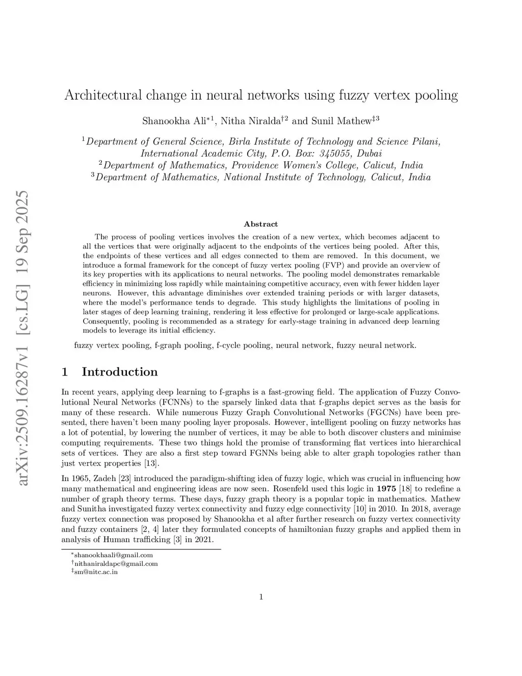 Architectural change in neural networks using fuzzy vertex pooling