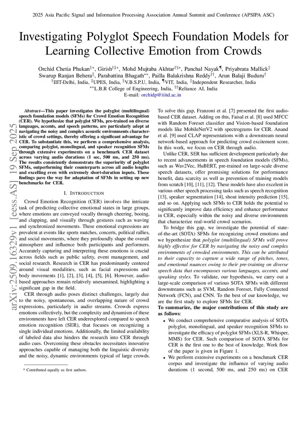 Investigating Polyglot Speech Foundation Models for Learning Collective Emotion from Crowds