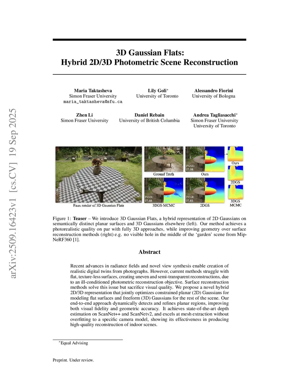 3D Gaussian Flats: Hybrid 2D/3D Photometric Scene Reconstruction