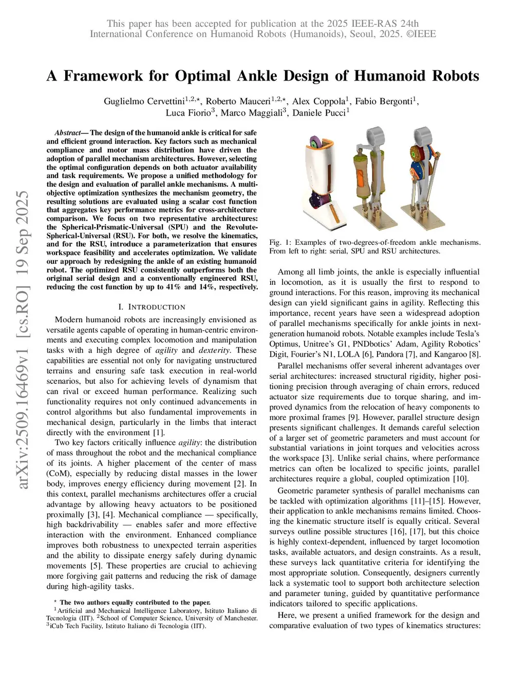 A Framework for Optimal Ankle Design of Humanoid Robots