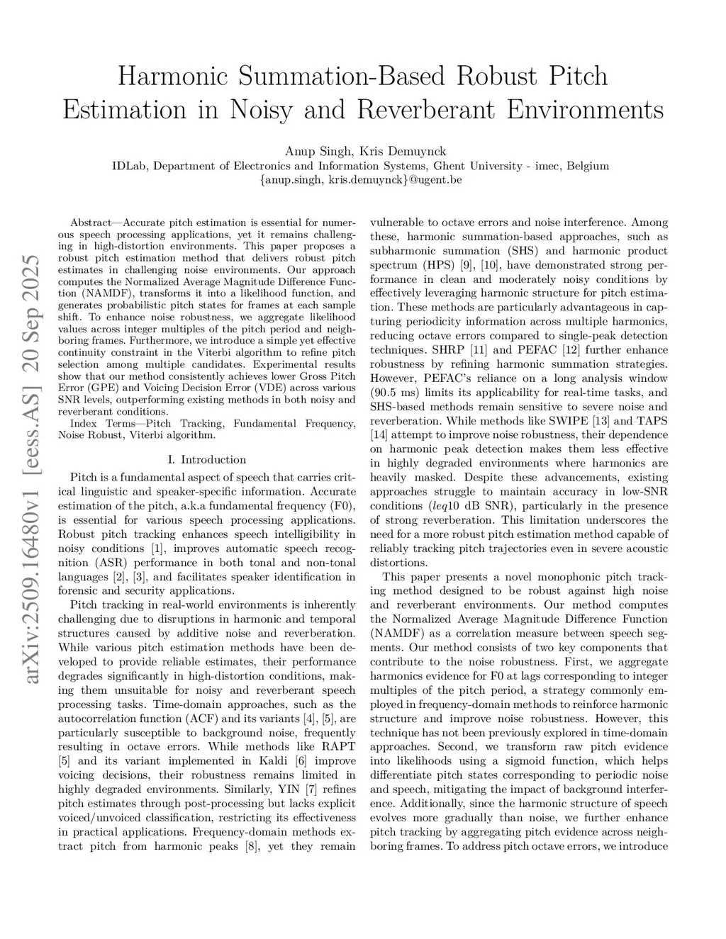 Harmonic Summation-Based Robust Pitch Estimation in Noisy and Reverberant Environments