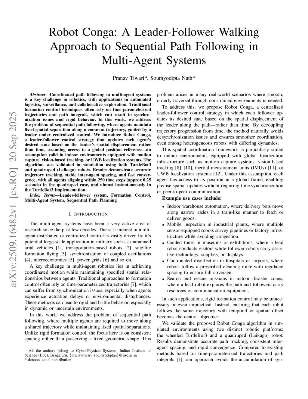Robot Conga: A Leader-Follower Walking Approach to Sequential Path Following in Multi-Agent Systems