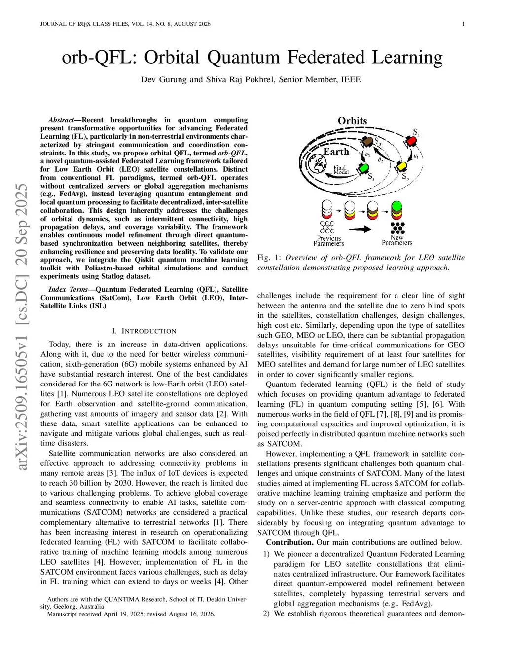 Recent breakthroughs in quantum computing present transformative opportunities for advancing Federated Learning (FL), particularly in non-terrestrial environments characterized by stringent communication and coordination constraints. In this study, we propose orbital QFL, termed orb-QFL, a novel quantum-assisted Federated Learning framework tailored for Low Earth Orbit (LEO) satellite constellations. Distinct from conventional FL paradigms, termed orb-QFL operates without centralized servers or global aggregation mechanisms (e.g., FedAvg), instead leveraging quantum entanglement and local quantum processing to facilitate decentralized, inter-satellite collaboration. This design inherently addresses the challenges of orbital dynamics, such as intermittent connectivity, high propagation delays, and coverage variability. The framework enables continuous model refinement through direct quantum-based synchronization between neighboring satellites, thereby enhancing resilience and preserving data locality. To validate our approach, we integrate the Qiskit quantum machine learning toolkit with Poliastro-based orbital simulations and conduct experiments using Statlog dataset.