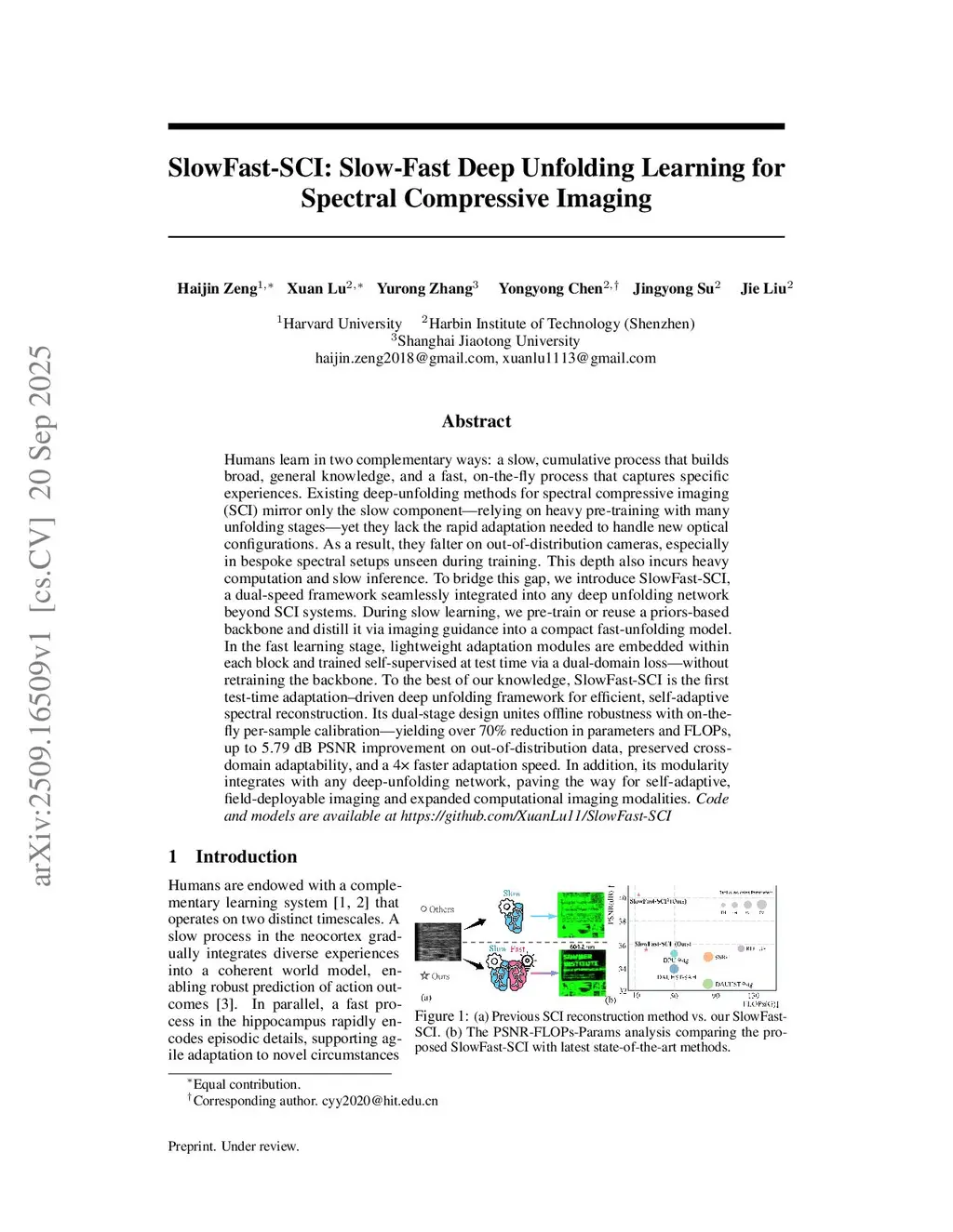 SlowFast-SCI: Slow-Fast Deep Unfolding Learning for Spectral Compressive Imaging