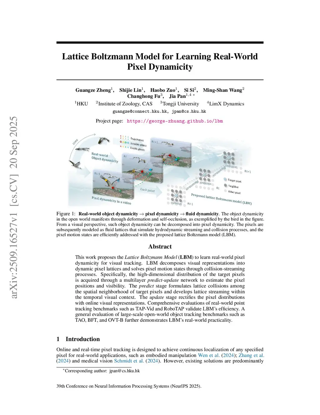 This work proposes the Lattice Boltzmann Model (LBM) to learn real-world pixel dynamicity for visual tracking. LBM decomposes visual representations into dynamic pixel lattices and solves pixel motion states through collision-streaming processes. Specifically, the high-dimensional distribution of the target pixels is acquired through a multilayer predict-update network to estimate the pixel positions and visibility. The predict stage formulates lattice collisions among the spatial neighborhood of target pixels and develops lattice streaming within the temporal visual context. The update stage rectifies the pixel distributions with online visual representations. Compared with existing methods, LBM demonstrates practical applicability in an online and real-time manner, which can efficiently adapt to real-world visual tracking tasks. Comprehensive evaluations of real-world point tracking benchmarks such as TAP-Vid and RoboTAP validate LBM's efficiency. A general evaluation of large-scale open-world object tracking benchmarks such as TAO, BFT, and OVT-B further demonstrates LBM's real-world practicality.