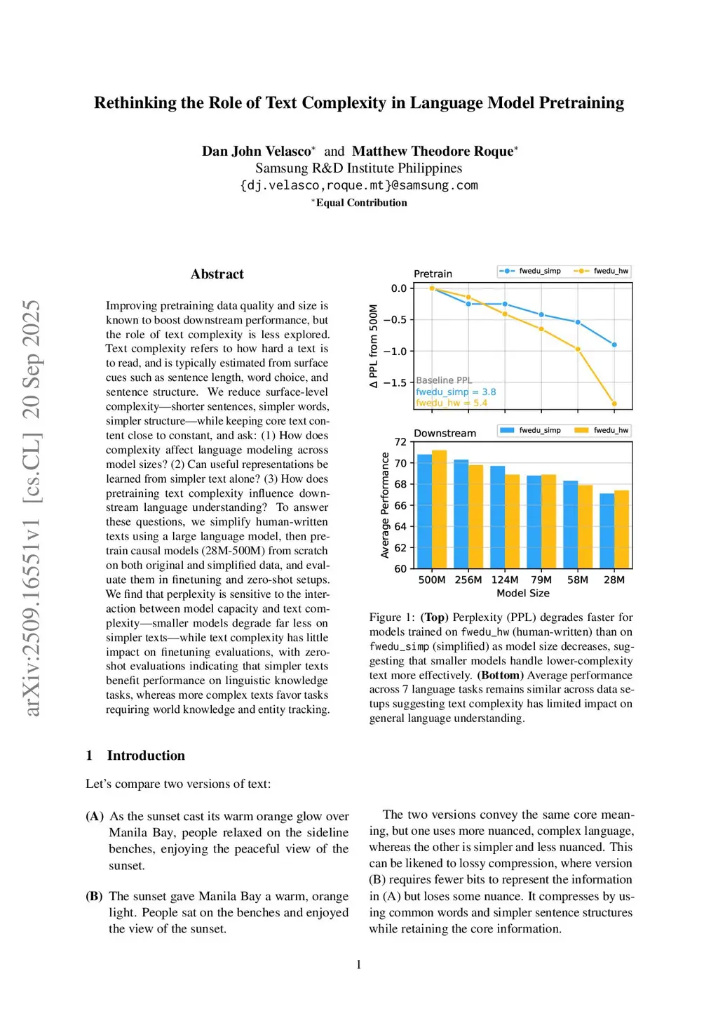Rethinking the Role of Text Complexity in Language Model Pretraining