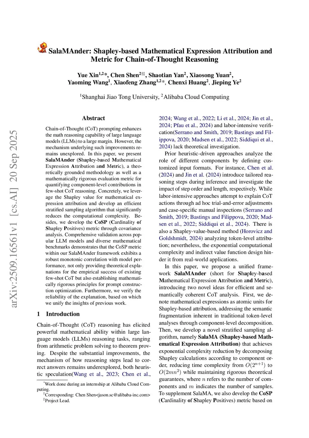 SalaMAnder: Shapley-based Mathematical Expression Attribution and Metric for Chain-of-Thought Reasoning