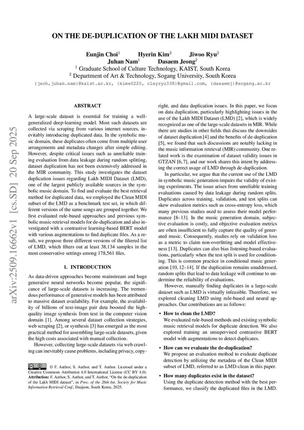 On the de-duplication of the Lakh MIDI dataset