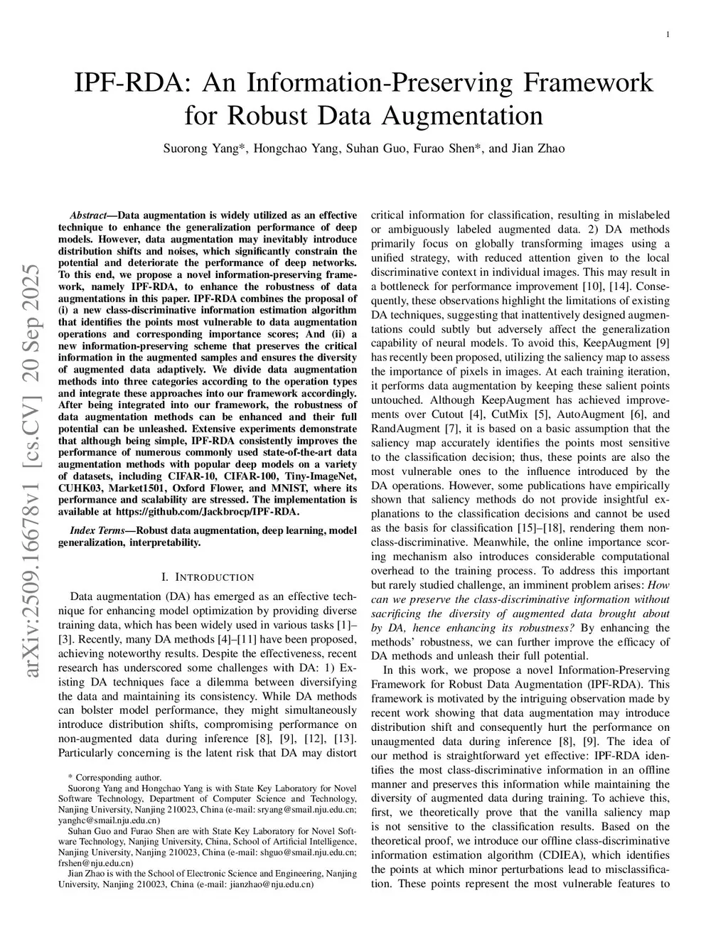 IPF-RDA: An Information-Preserving Framework for Robust Data Augmentation