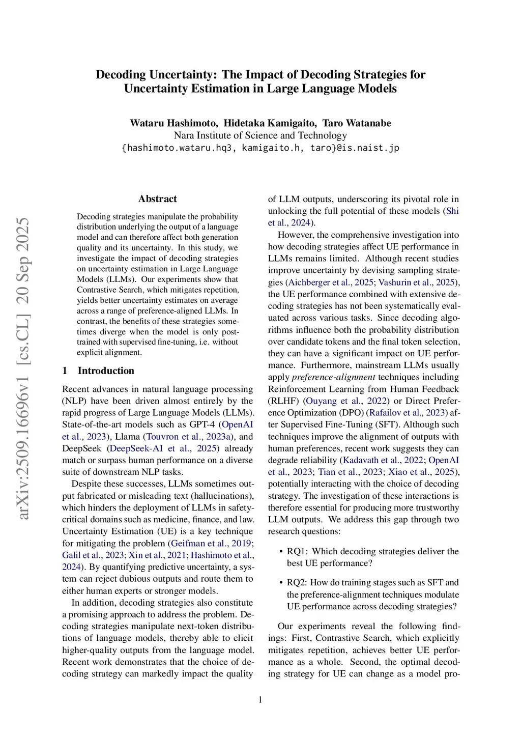 Decoding strategies manipulate the probability distribution underlying the output of a language model and can therefore affect both generation quality and its uncertainty. In this study, we investigate the impact of decoding strategies on uncertainty estimation in Large Language Models (LLMs). Our experiments show that Contrastive Search, which mitigates repetition, yields better uncertainty estimates on average across a range of preference-aligned LLMs. In contrast, the benefits of these strategies sometimes diverge when the model is only post-trained with supervised fine-tuning, i.e. without explicit alignment.