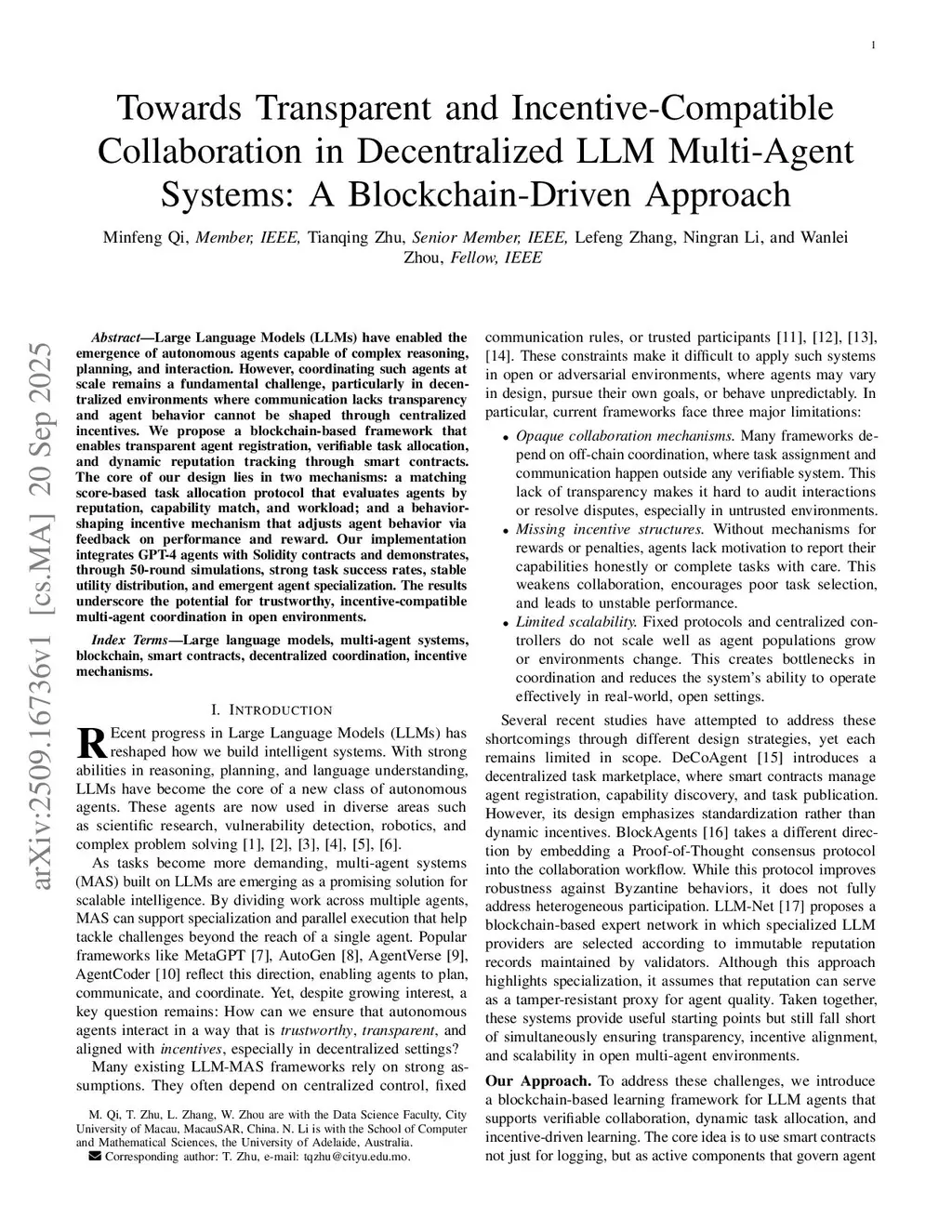 Towards Transparent and Incentive-Compatible Collaboration in Decentralized LLM Multi-Agent Systems: A Blockchain-Driven Approach