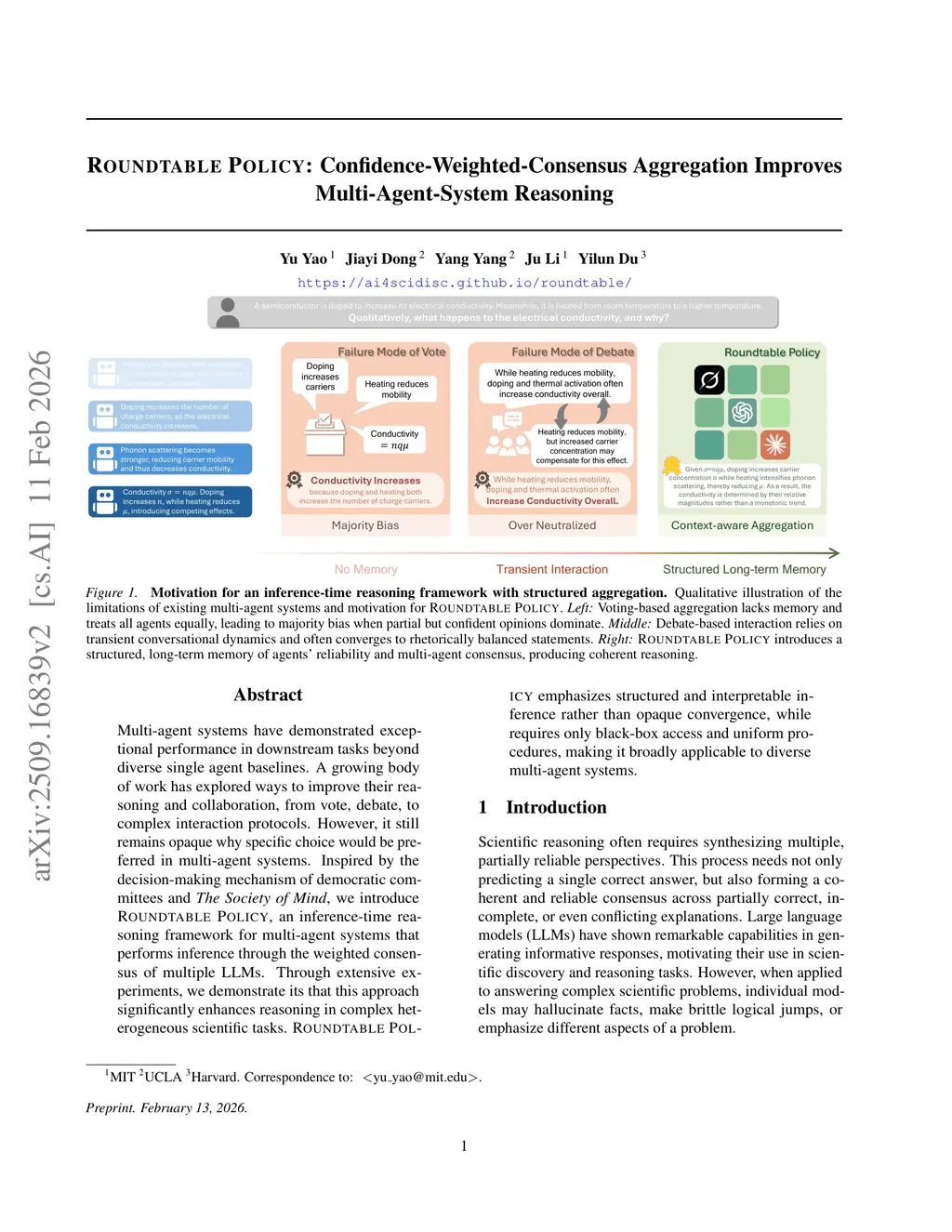 Multi-agent systems have demonstrated exceptional performance in downstream tasks beyond diverse single agent baselines. A growing body of work has explored ways to improve their reasoning and collaboration, from vote, debate, to complex interaction protocols. However, it still remains opaque why specific choice would be preferred in multi-agent systems. Inspired by the decision-making mechanism of democratic committees and The Society of Mind, we introduce Roundtable Policy, an inference-time reasoning framework for multi-agent systems that performs inference through the weighted consensus of multiple LLMs. Through extensive experiments, we demonstrate its that this approach significantly enhances reasoning in complex heterogeneous scientific tasks. Roundtable Policy emphasizes structured and interpretable inference rather than opaque convergence, while requires only black-box access and uniform procedures, making it broadly applicable to diverse multi-agent systems.
