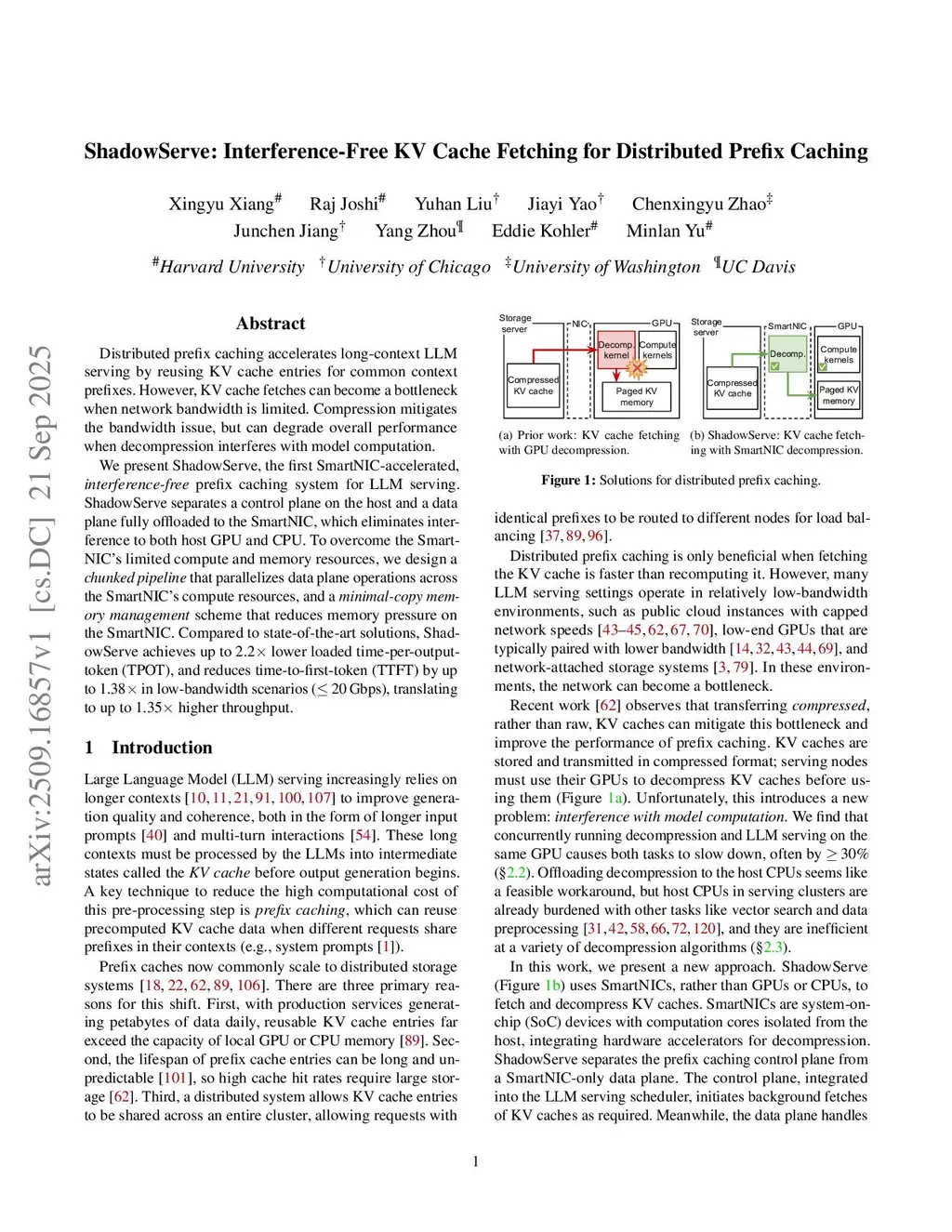 ShadowServe: Interference-Free KV Cache Fetching for Distributed Prefix Caching