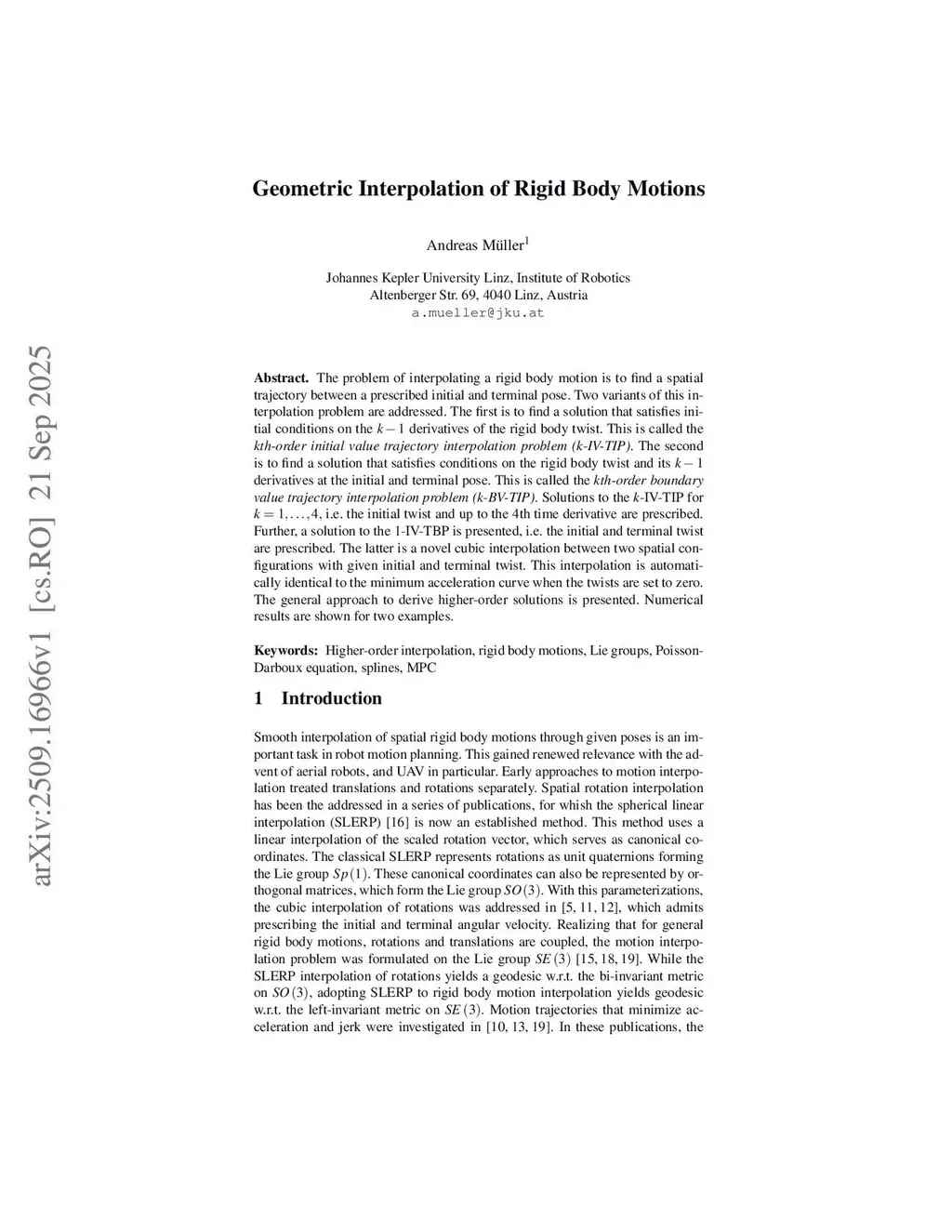 Geometric Interpolation of Rigid Body Motions
