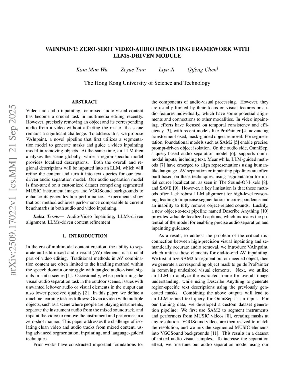 VAInpaint: Zero-Shot Video-Audio inpainting framework with LLMs-driven Module