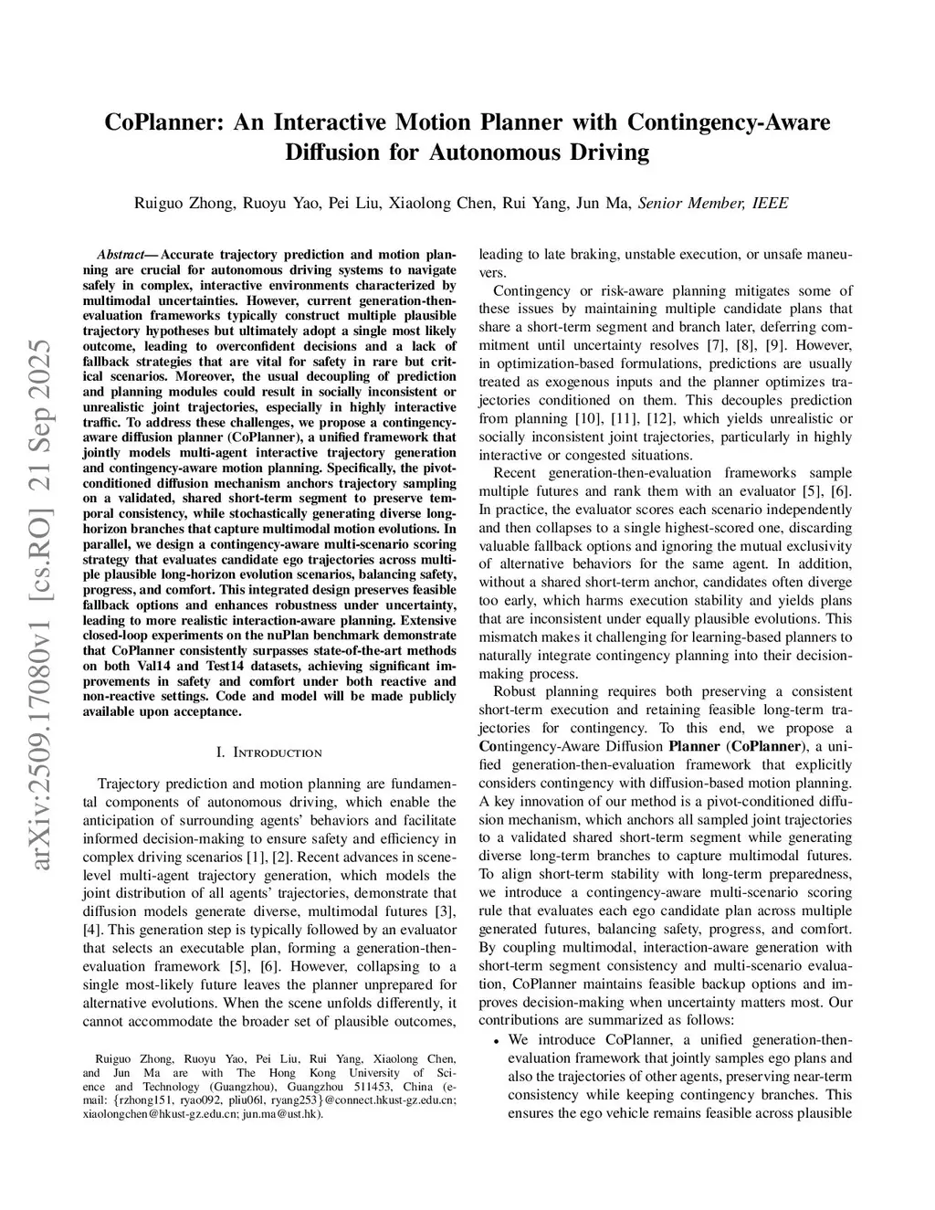 CoPlanner: An Interactive Motion Planner with Contingency-Aware Diffusion for Autonomous Driving