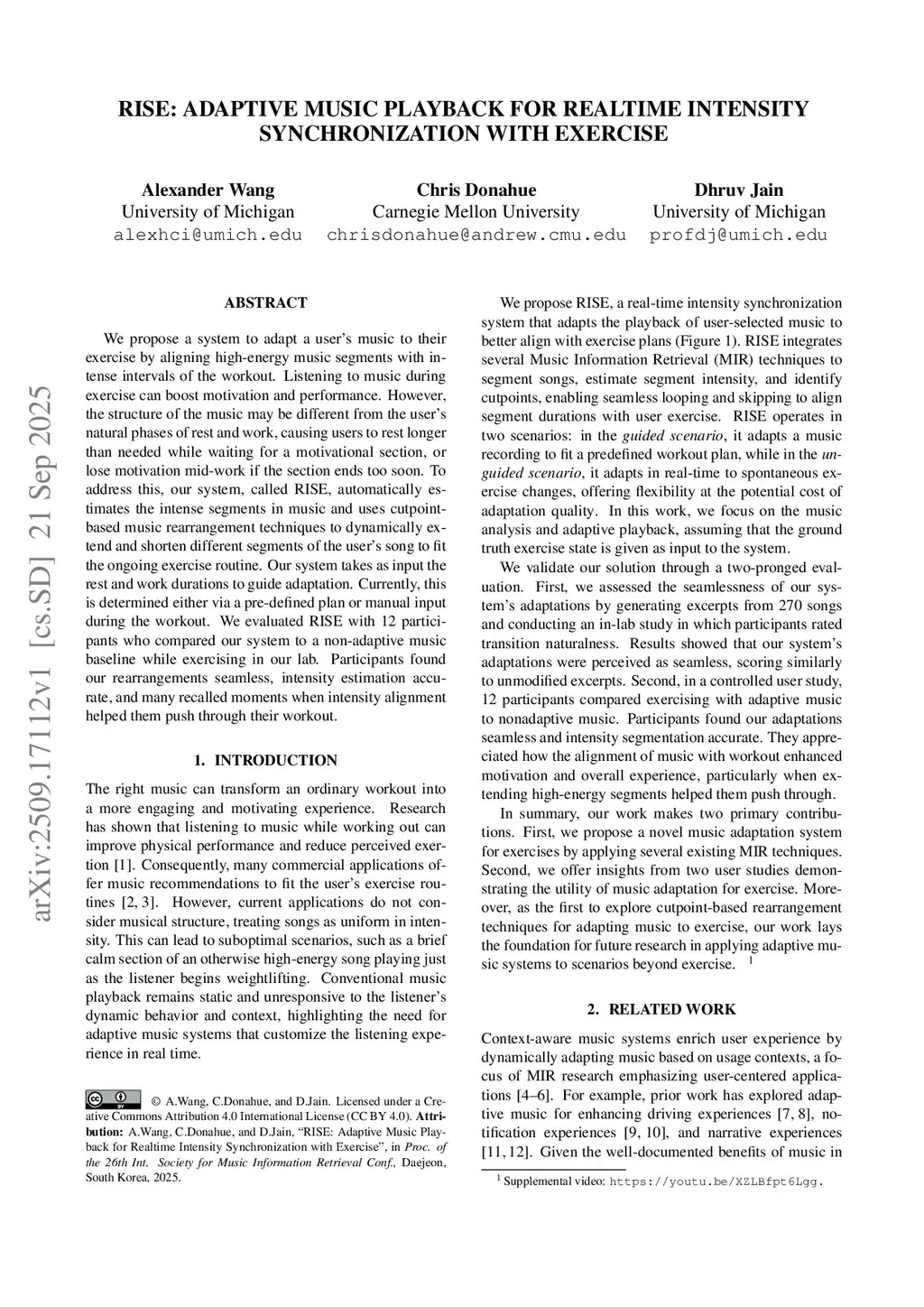 RISE: Adaptive music playback for Realtime Intensity Synchronization with Exercise