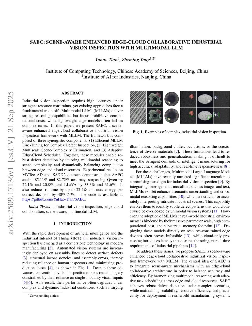 SAEC: Scene-Aware Enhanced Edge-Cloud Collaborative Industrial Vision Inspection with Multimodal LLM