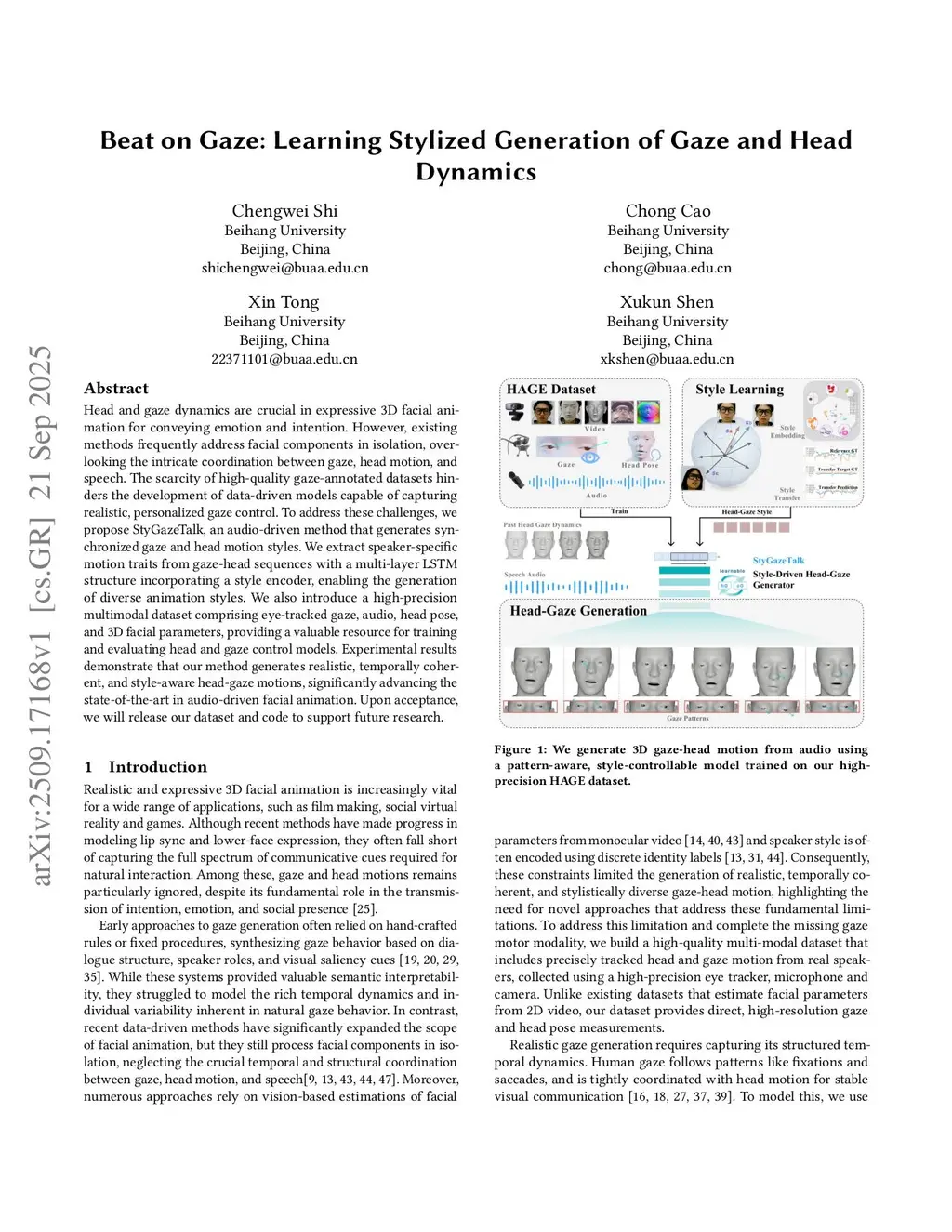 Gaze and head movements play a central role in expressive 3D media, human-agent interaction, and immersive communication. Existing works often model facial components in isolation and lack mechanisms for generating personalized, style-aware gaze behaviors. We propose StyGazeTalk, a multimodal framework that synthesizes synchronized gaze-head dynamics with controllable styles. To support high-fidelity training, we construct HAGE, a high-precision multimodal dataset containing eye-tracking data, audio, head pose, and 3D facial parameters. Experiments show that our method produces temporally coherent, style-consistent gaze-head motions, enhancing realism in 3D face generation.