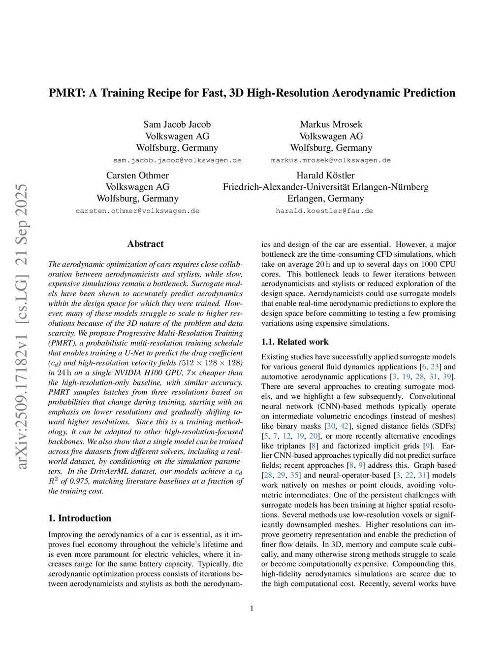 The aerodynamic optimization of cars requires close collaboration between aerodynamicists and stylists, while slow, expensive simulations remain a bottleneck. Surrogate models have been shown to accurately predict aerodynamics within the design space for which they were trained. However, many of these models struggle to scale to higher resolutions because of the 3D nature of the problem and data scarcity. We propose Progressive Multi-Resolution Training (PMRT), a probabilistic multi-resolution training schedule that enables training a U-Net to predict the drag coefficient () and high-resolution velocity fields (512 x 128 x 128) in 24 hours on a single NVIDIA H100 GPU, 7x cheaper than the high-resolution-only baseline, with similar accuracy. PMRT samples batches from three resolutions based on probabilities that change during training, starting with an emphasis on lower resolutions and gradually shifting toward higher resolutions. Since this is a training methodology, it can be adapted to other high-resolution-focused backbones. We also show that a single model can be trained across five datasets from different solvers, including a real-world dataset, by conditioning on the simulation parameters. In the DrivAerML dataset, our models achieve a of 0.975, matching literature baselines at a fraction of the training cost.