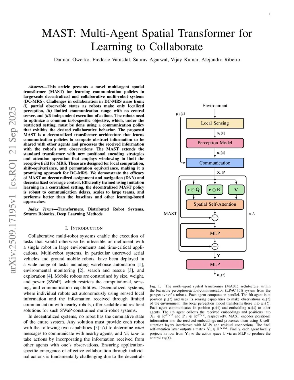 MAST: Multi-Agent Spatial Transformer for Learning to Collaborate