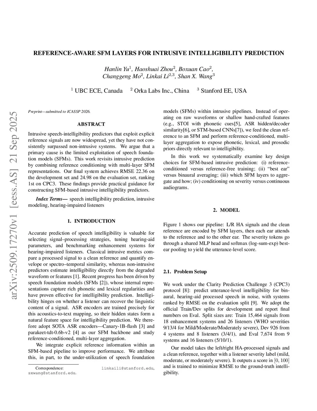 Reference-aware SFM layers for intrusive intelligibility prediction