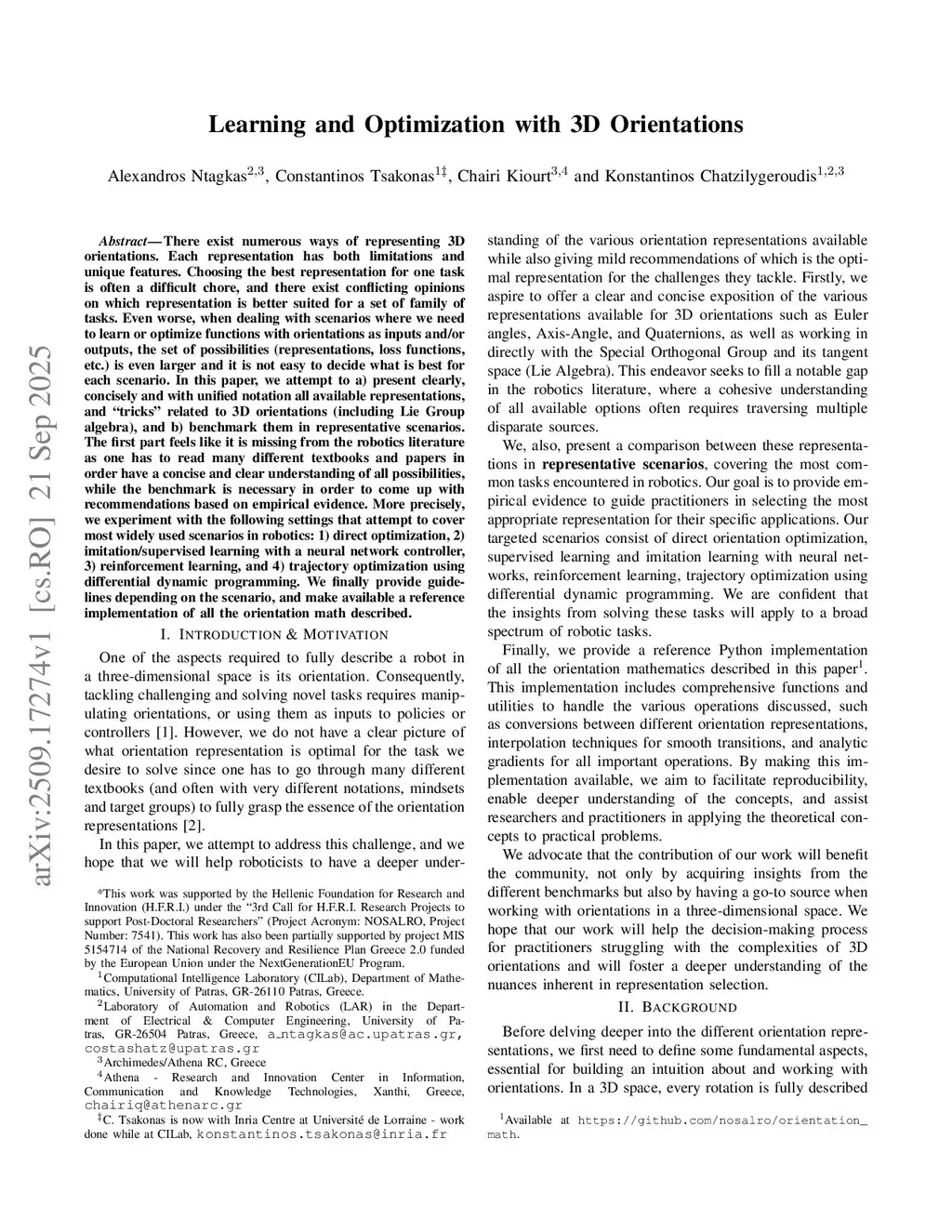 Learning and Optimization with 3D Orientations