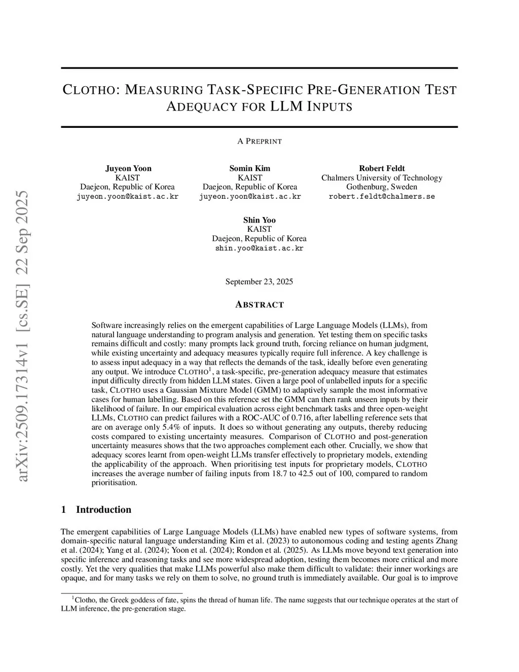 Clotho: Measuring Task-Specific Pre-Generation Test Adequacy for LLM Inputs